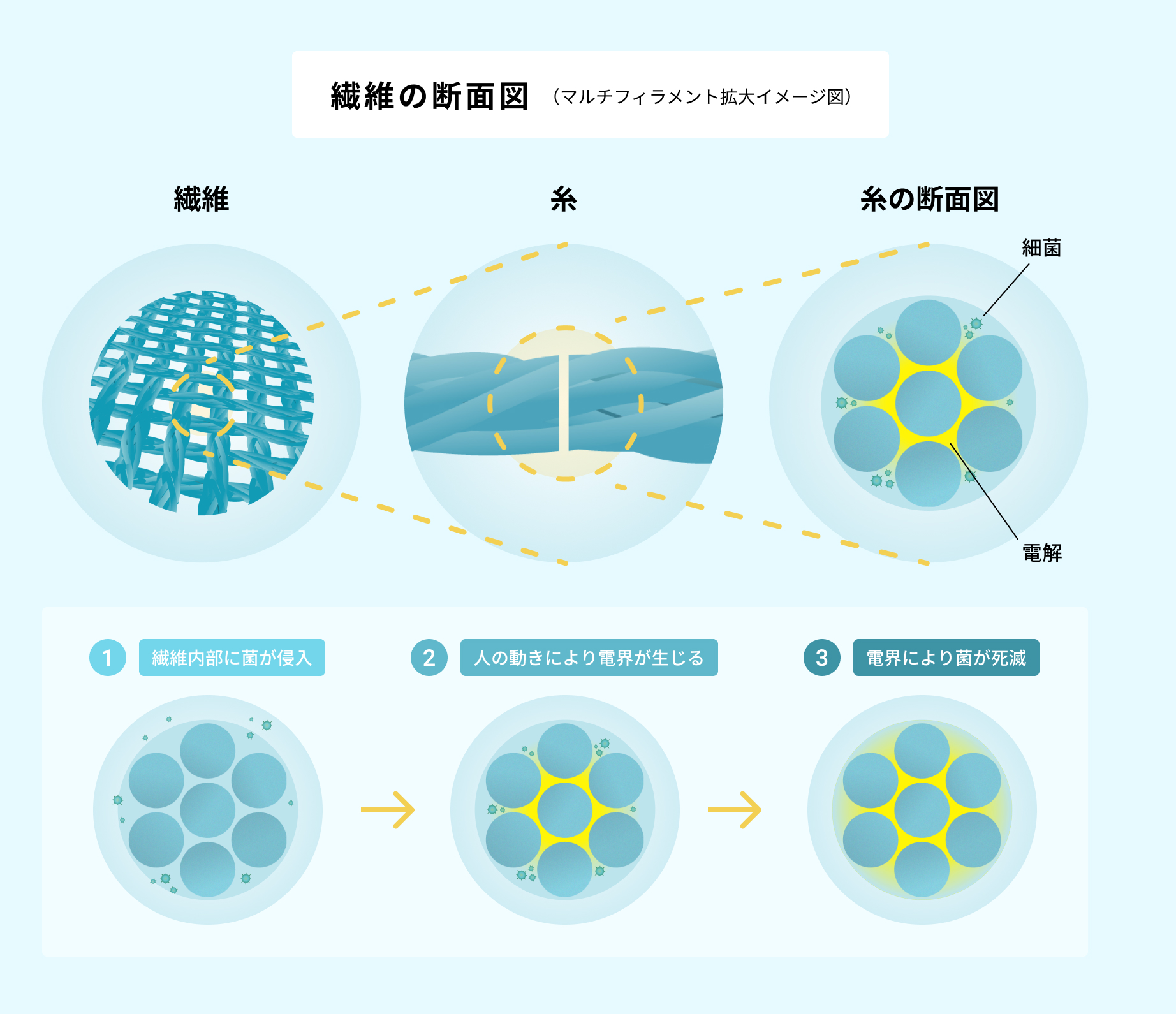 世界で初めて電気の力で抗菌性能を発揮する繊維を開発