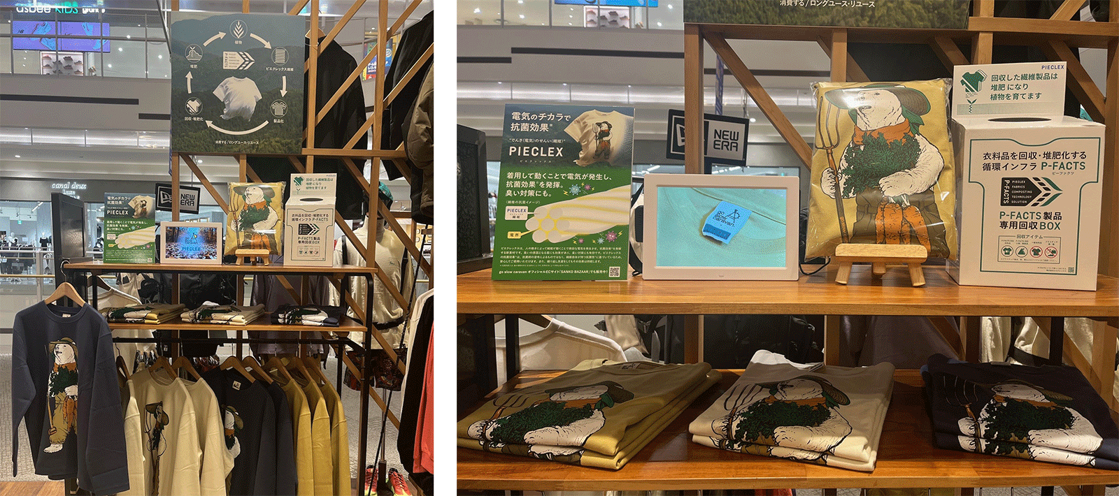 さらに、本製品の発売に合わせ、go slow caravan店頭では、「電気の繊維」ピエクレックスおよびアパレルの回収・堆肥化システム「P-FACTS」(ピーファクツ)をより多くの皆さまに知っていただくための売り場づくり、プロモーションを拡大しています。