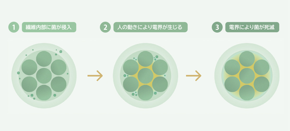 「動く」ことで抗菌効果※1を発揮する、「電気の繊維」ピエクレックス